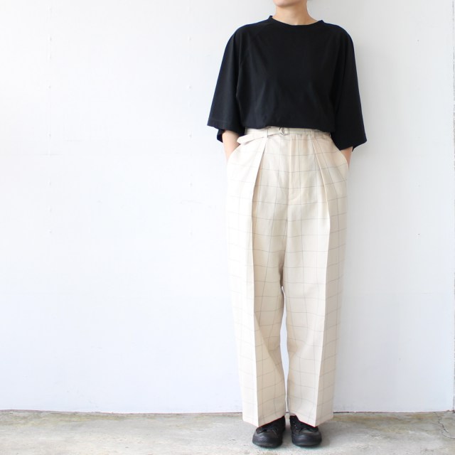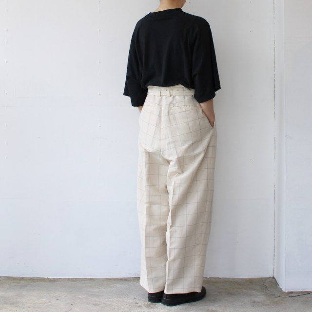■ FANTASTICDAYS ベルテッドワイドアンクルパンツ / BELTEDANKLE (IVORY check)