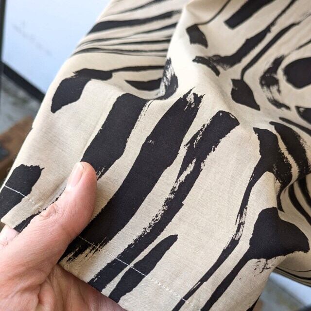 テロっとしたドレープ感のあるコットンキュプラタイプライター生地に、オリジナルの柄が良いバランスで融合。