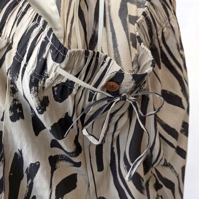 オリジナルのブラッシュドプリント生地のワイドイージートラウザー。
