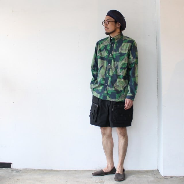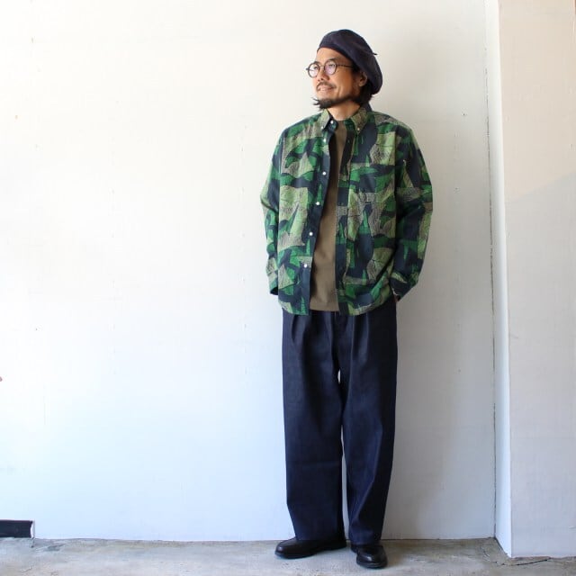 weac. BASIC SHIRTS 総柄ボタンダウンシャツ (Green)