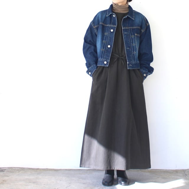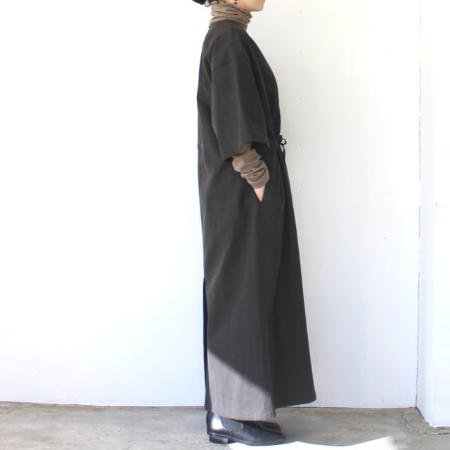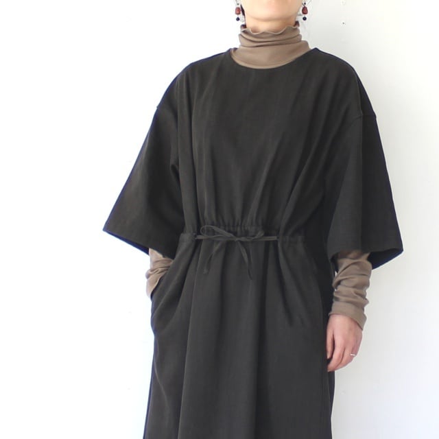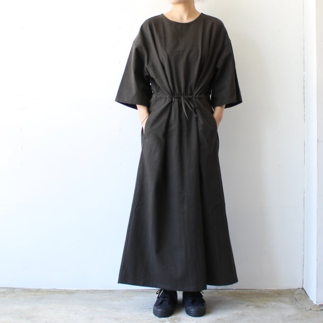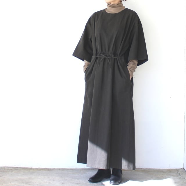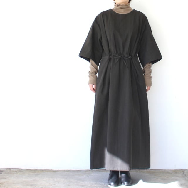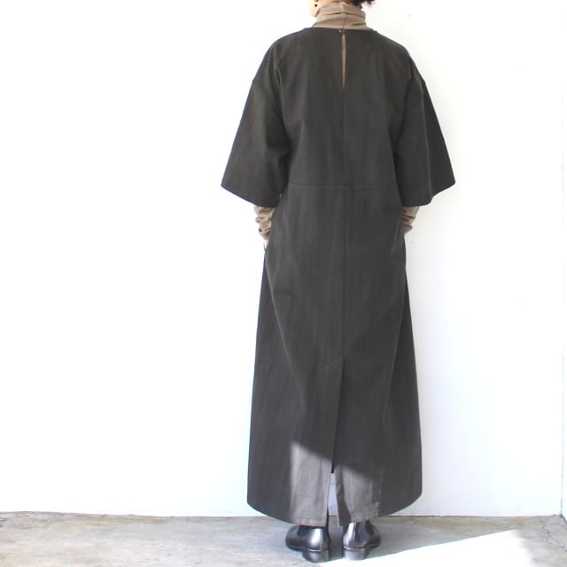 オリジナルの墨染め加工を施したツイル生地を使ったワンピース。