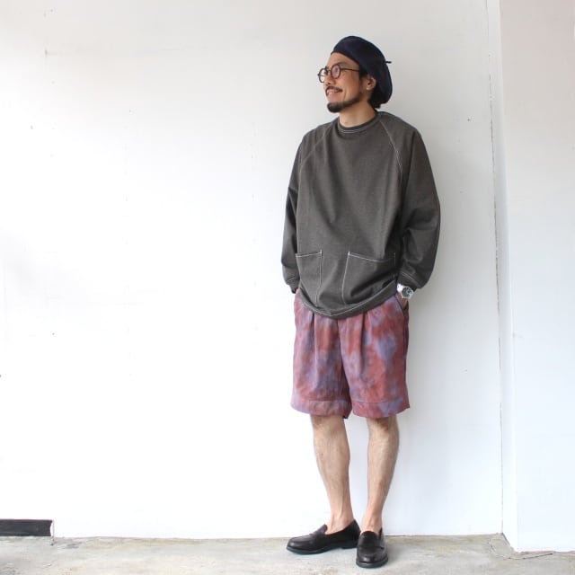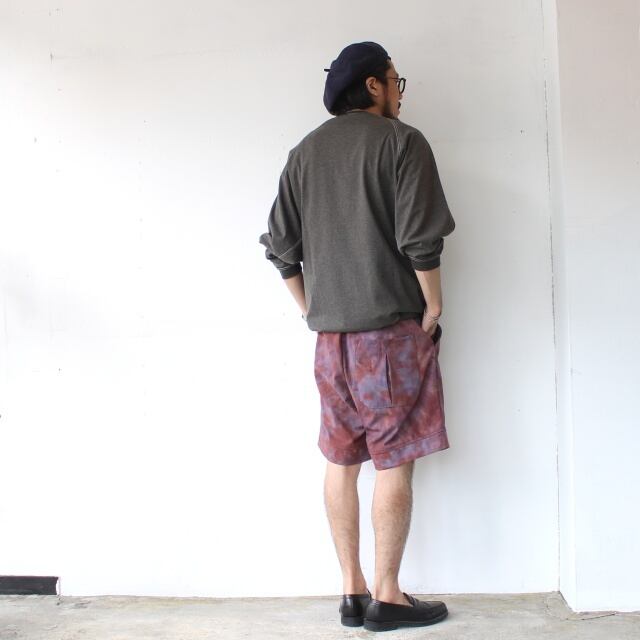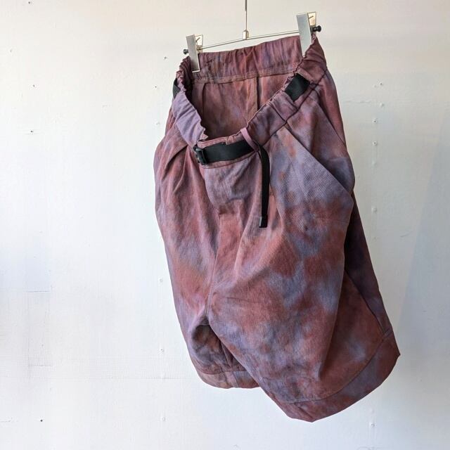 ハンドメイドのムラ染めナイロン生地を採用したショートパンツ。