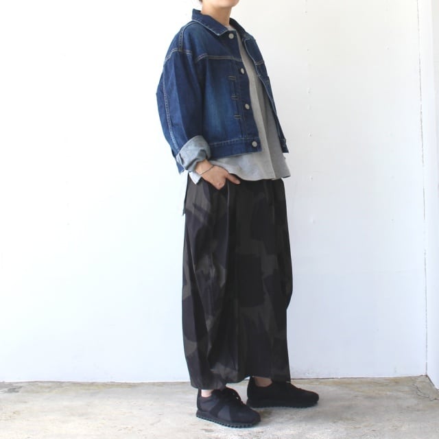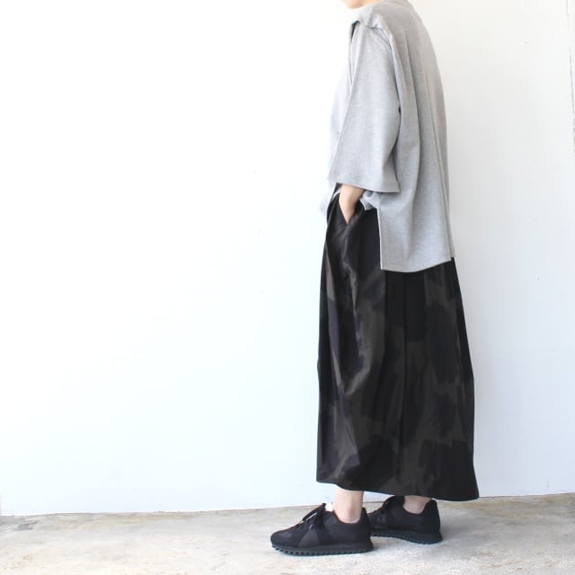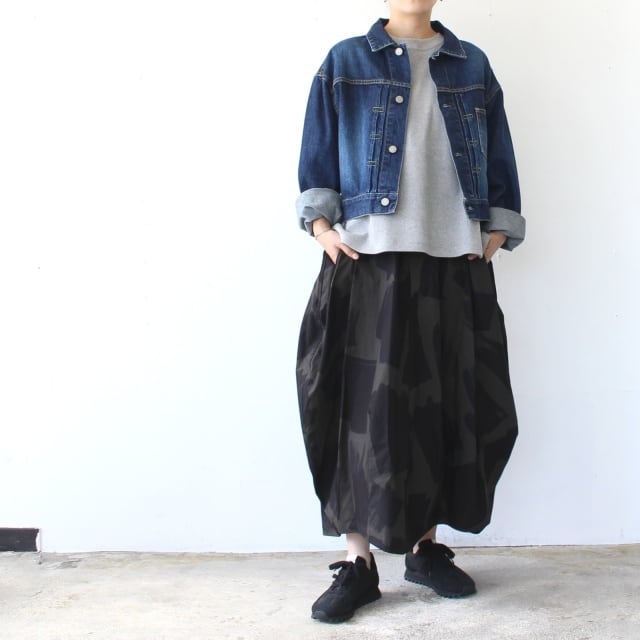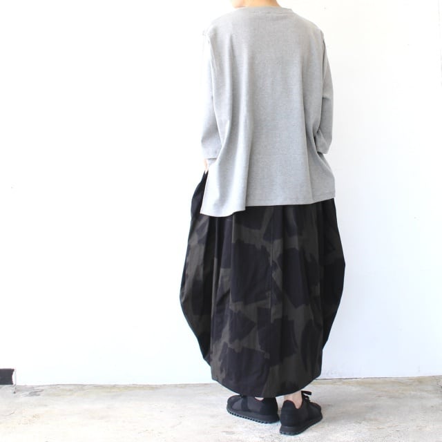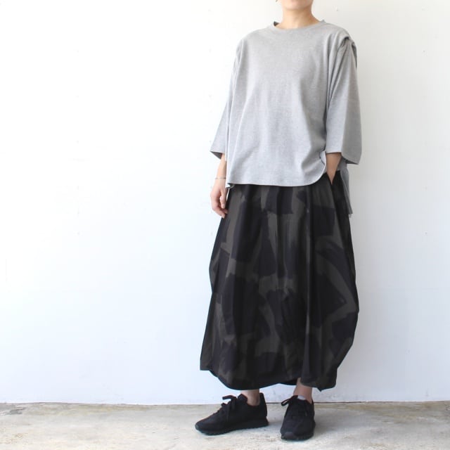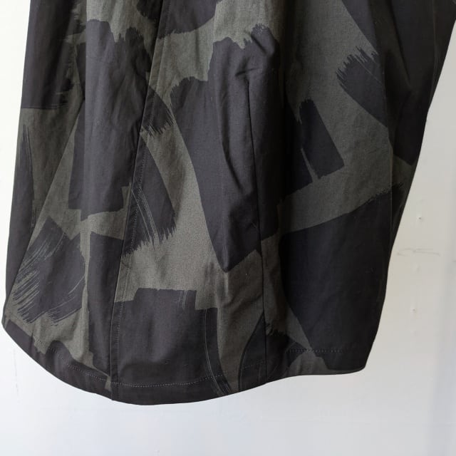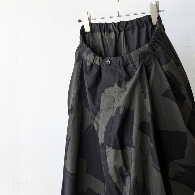 オリジナルのブラッシュプリントを施した40/タイプライター生地を使ったスカート。