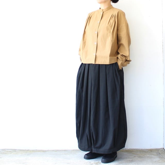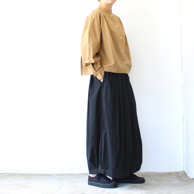 丈を長くし、裾はタックを施すことで少し絞りを入れています。