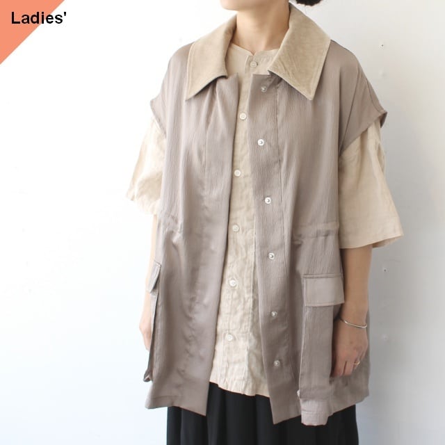 襟部分のみコーデュロイ素材を使用し秋冬の空気感をプラス。