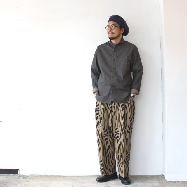 HAVERSACKより「Brushed jacquard 2tuck wide trousers」