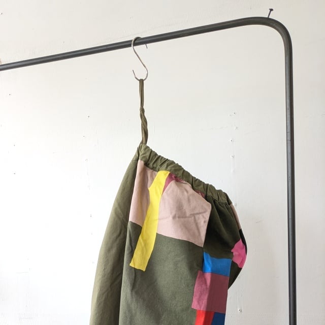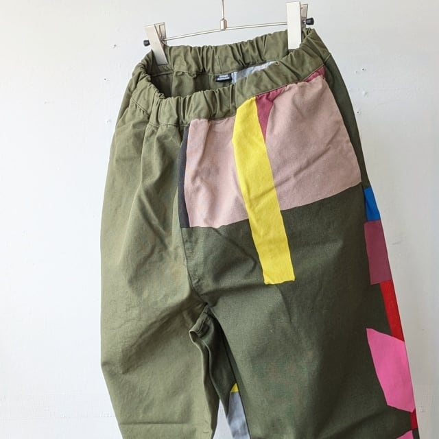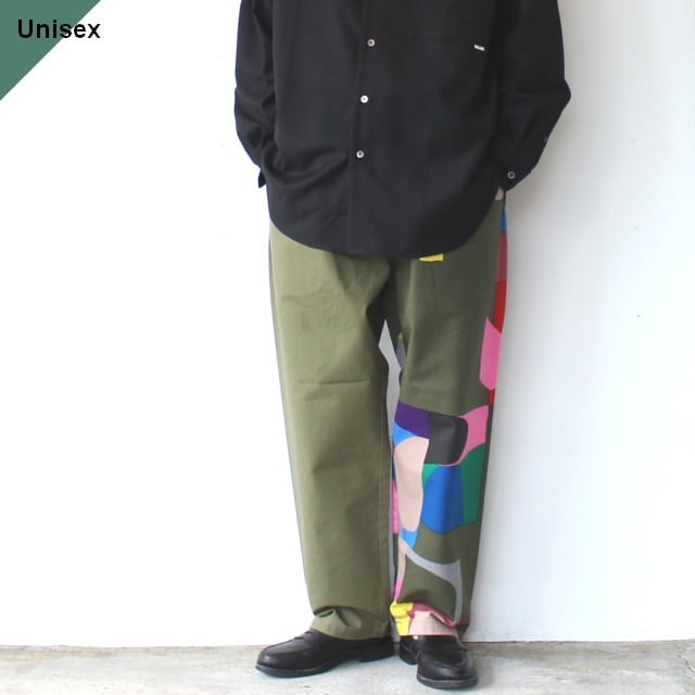 Bohemians パッチワークライクプリントワイドパンツ Abstraction canvas × solid loose pants