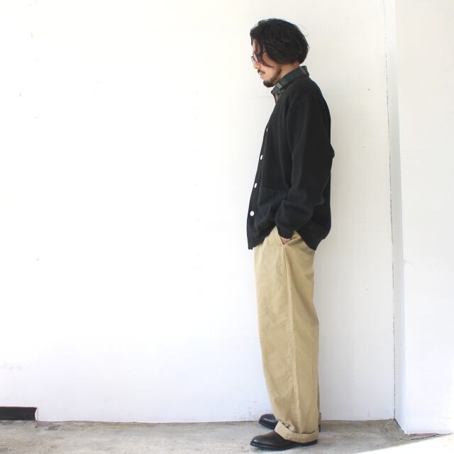 【ラスト1点】Siora 畦編み裏起毛コットンニットカーディガン Brushed rib stitch knit seamless cardigan (Ink black)