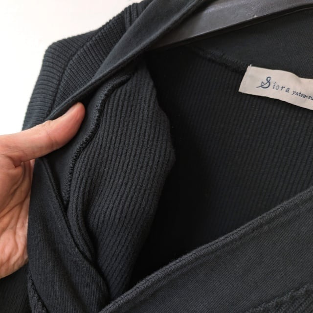 Siora 畦編み裏起毛コットンニットカーディガン Brushed rib stitch knit seamless cardigan (Ink black)