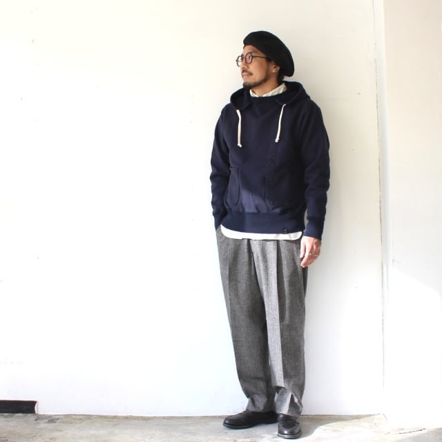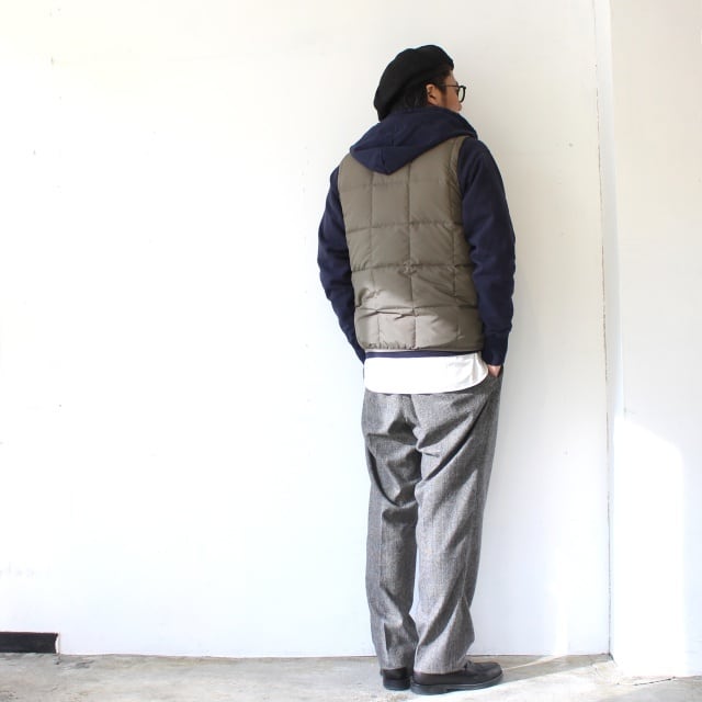 太ももはゆとりを持たせ、裾にかけて綺麗なテーバードがきいたスラックスです。