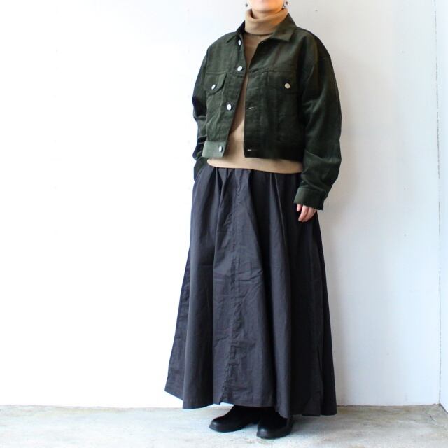 シンプルなGジャンタイプのシルエットに、グリーンのコーデュロイ生地が大人の雰囲気抜群。