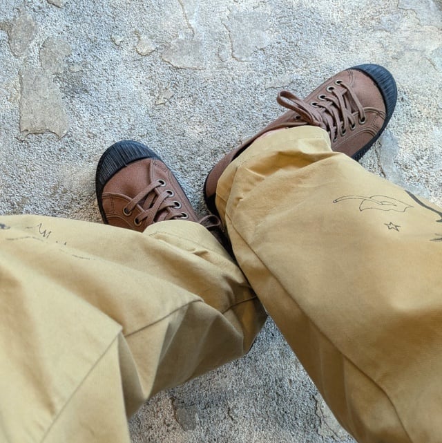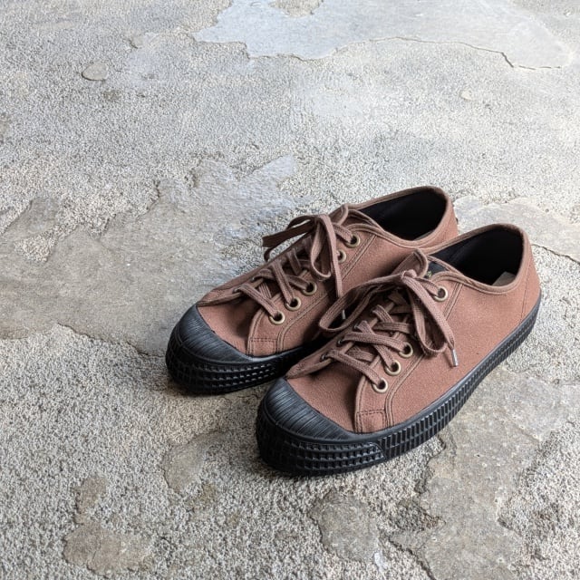 素材は天然ゴムのソールに綿キャンバス。素朴な味わい。