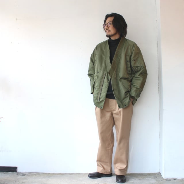 日本国産の綿カツラギ(太番手糸の綾織り生地)を使用したタックワイドトラウザー。