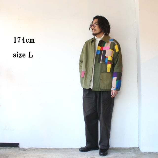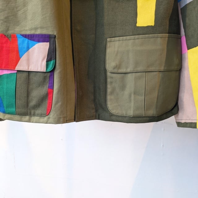 Bohemians パッチワークライクプリントワークジャケット Abstraction canvas × solid flap work jacket