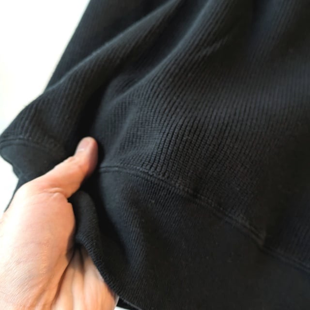 上質な綿100%を使用し、肌触りはチクチクせず、スウェットの延長のようなイメージでも楽しめます。
