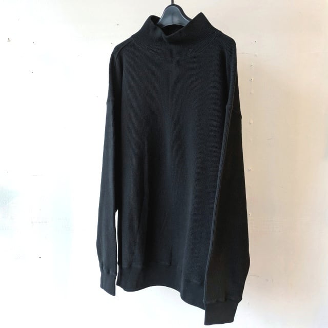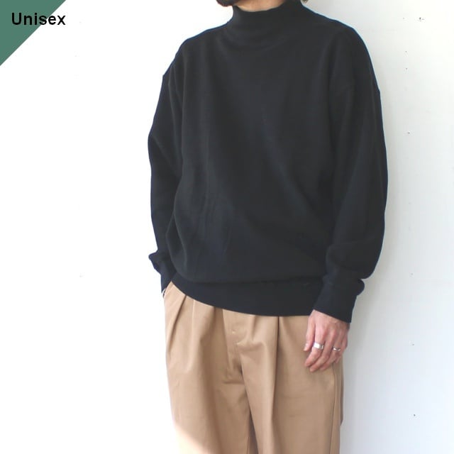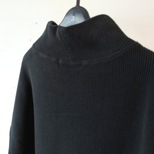 Siora 裏起毛畦編みハイネックコットンニット (Ink black)