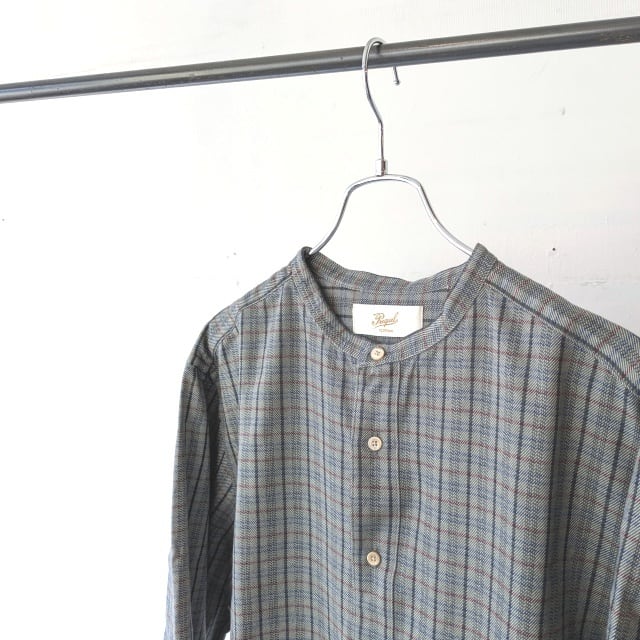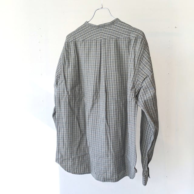 PREQUEL ネルチェックバンドカラーシャツ Check Stand-up Collar Shirt (Gray)