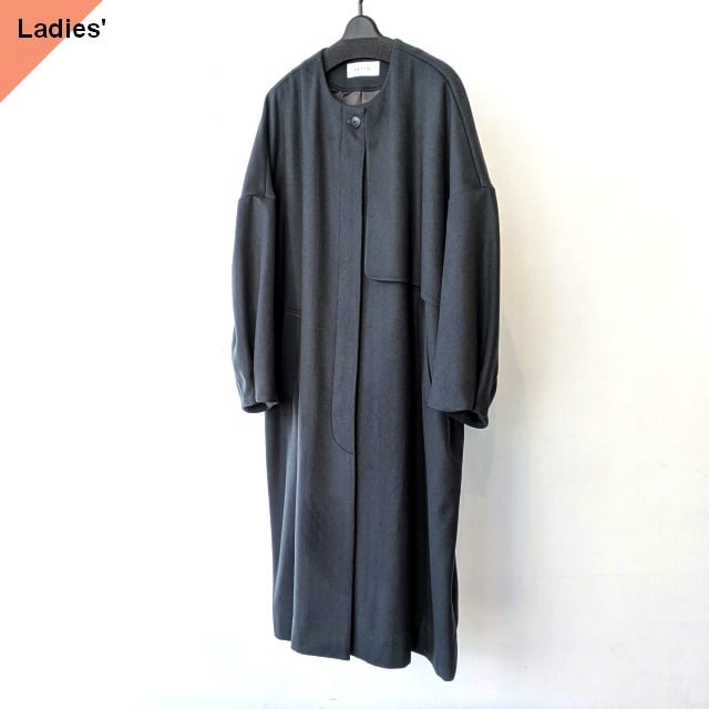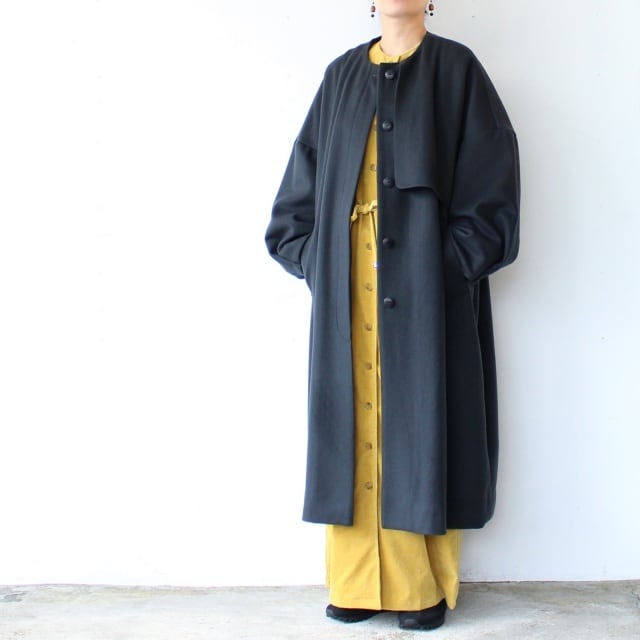 ノーカラーですっきりとした首元はブラウスやタートルネックなどインナーデザインを選ばずにスタイリングを楽しめます。