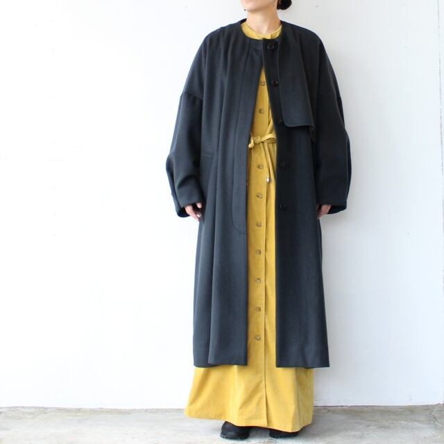 ノーカラーですっきりとした首元はブラウスやタートルネックなどインナーデザインを選ばずにスタイリングを楽しめます。