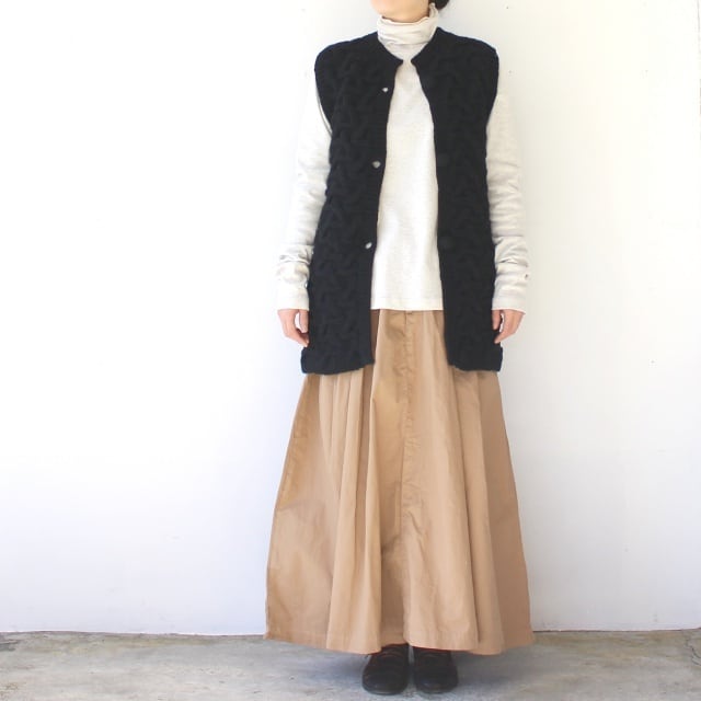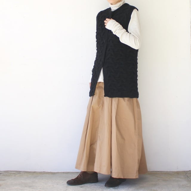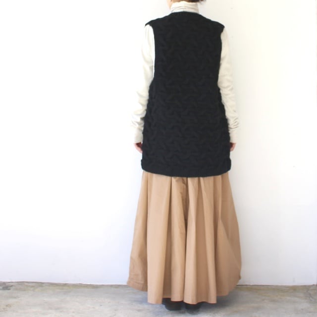 IKITSUKE リバーケーブルニットベスト Hand-knit river cable vest (Black)