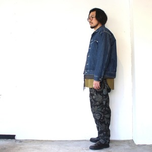 この生地は、染料染めと顔料染めを組み合わせた、日本の技術を駆使した手の込んだ生地で