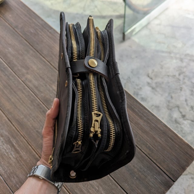 ミリタリズムを感じさせるデザインと、機能性・収納性を高めたレザーオーガナイザーです。充電器などガジェットアクセサリー、通帳、パスポート、薬、ウォレット、携帯電話、ipad mini、A5ノート、ログブックなどあらゆる小物をすべて収納・整理できます。