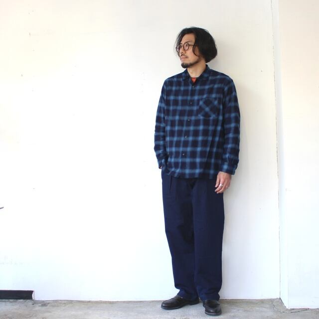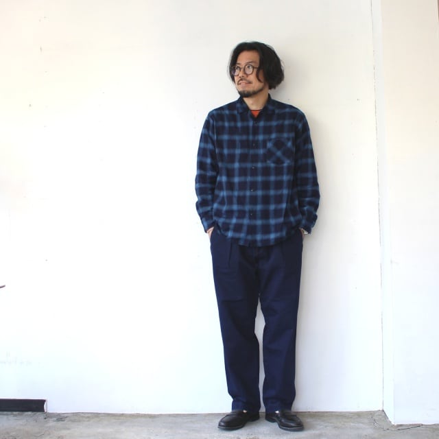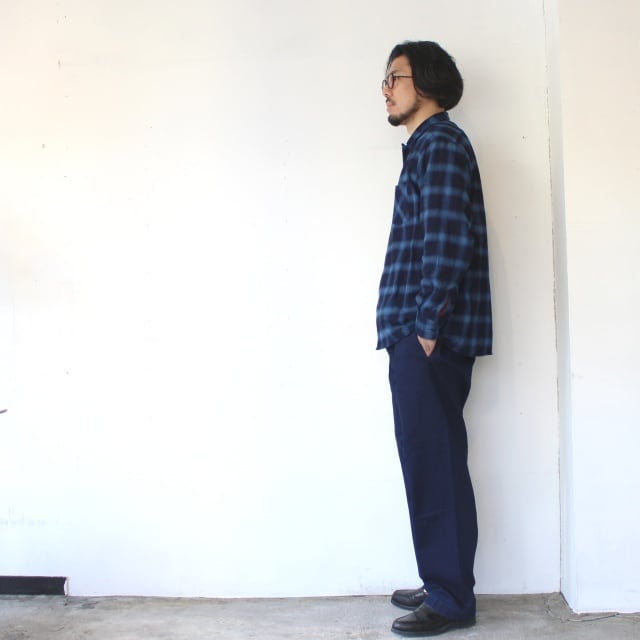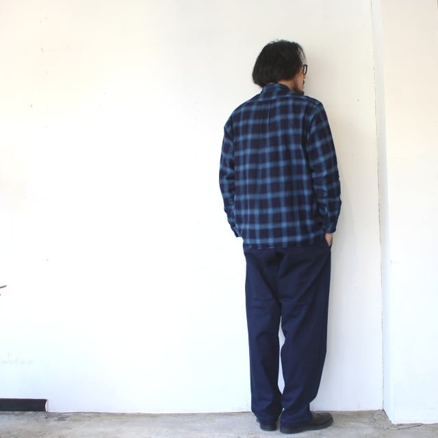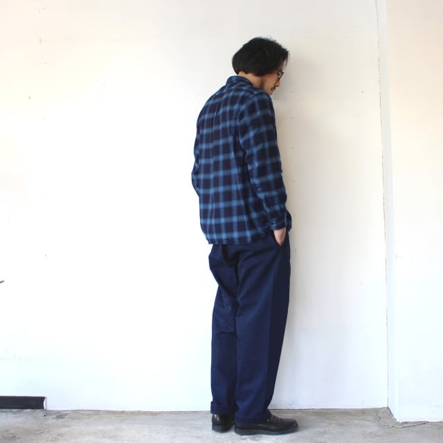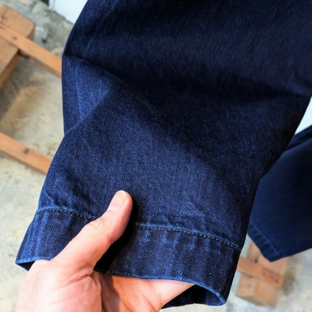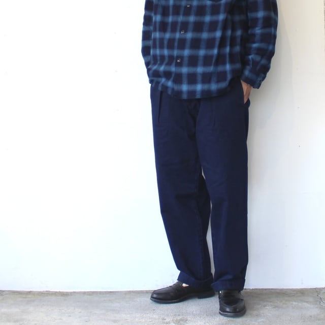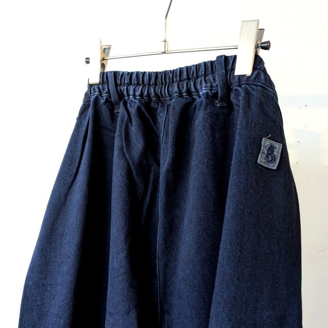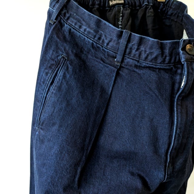 濃紺のインディゴデニムを使用したタックイージートラウザー。