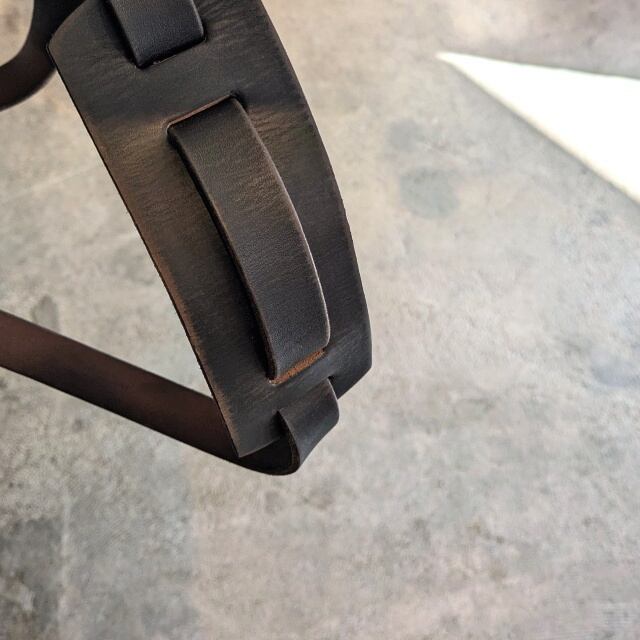 レザーは姫路産ベジタブルタンニンレザーを使用し、トラディショナルな手染め製法で染め上げました。