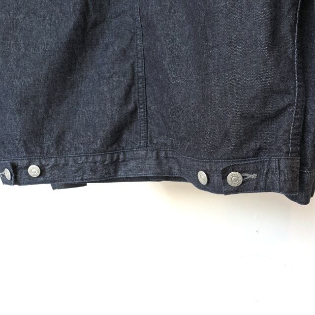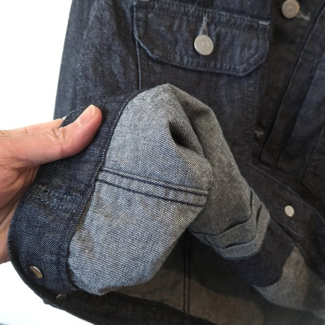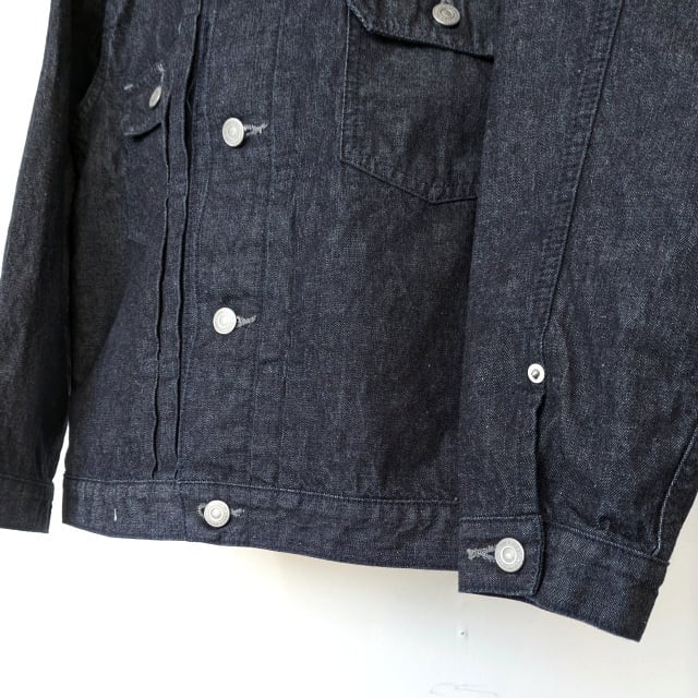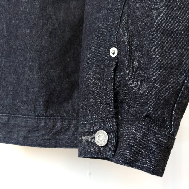 オーセンティックな2ndタイプのデニムジャケットをノーカラーデザインで、現代の着回しスタイルにリデザイン。