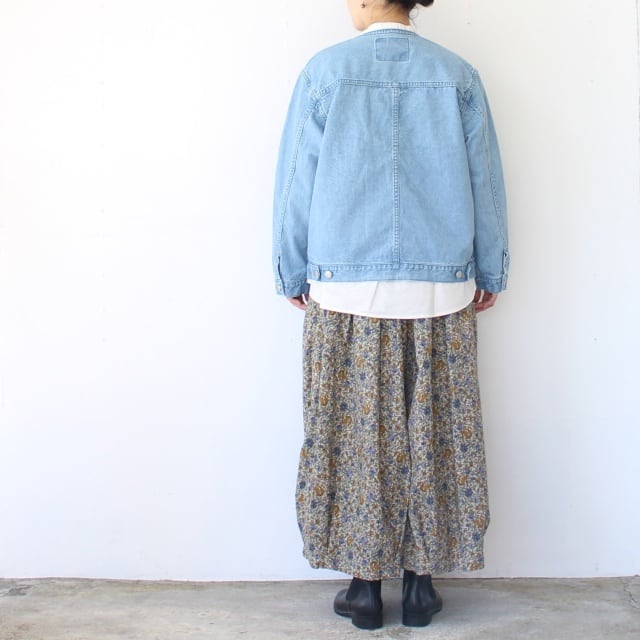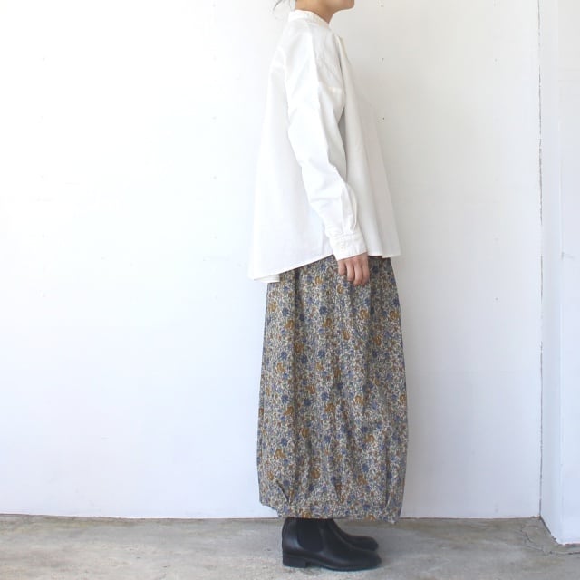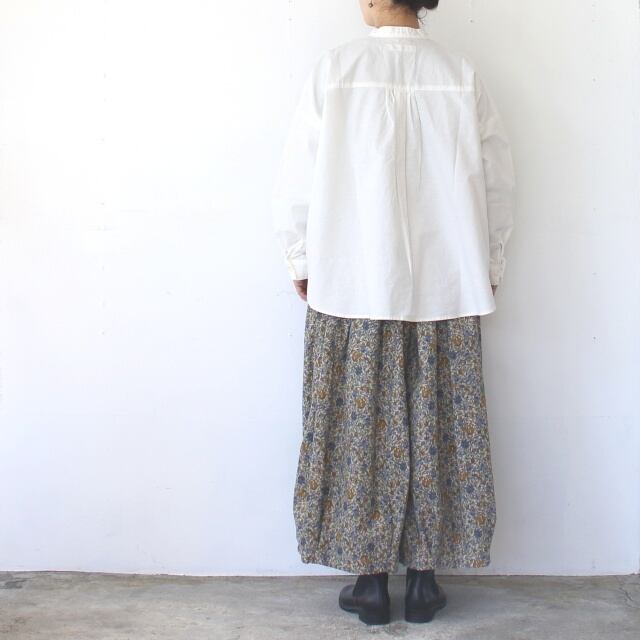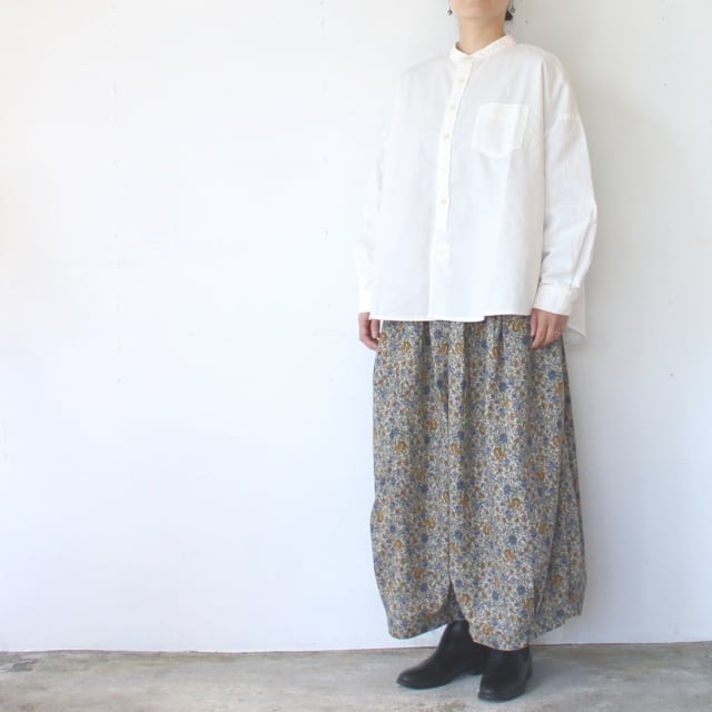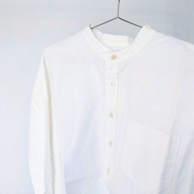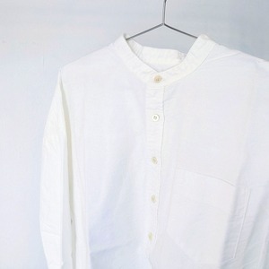 バンドカラーに緩やかなシルエットのワークシャツ。