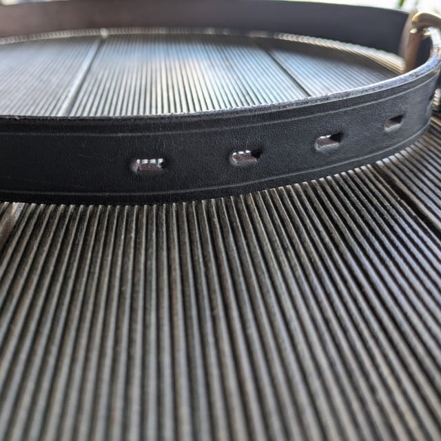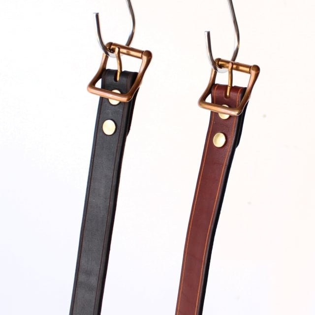 伝統的な手染め製法で仕上げたオイルドレザーを使用したベルト。