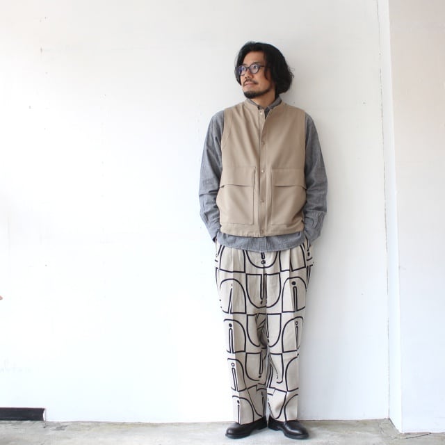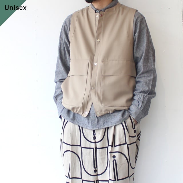 amne ギャバジンカラーレスベスト GABARDINE useful vest (Beige)