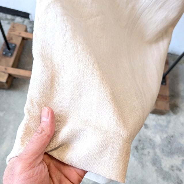 もう何シーズンか登場したユーティリティートラウザーから、綿麻ヘリンボーンのタイプが入荷です。