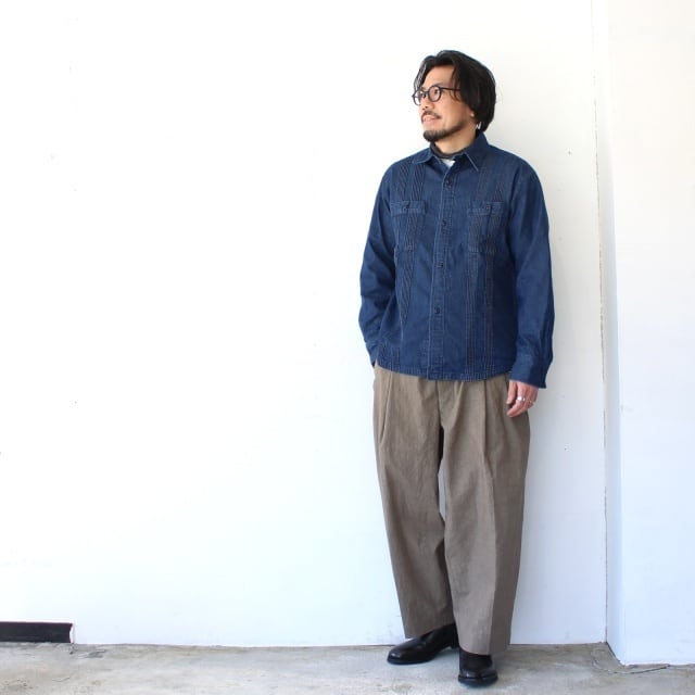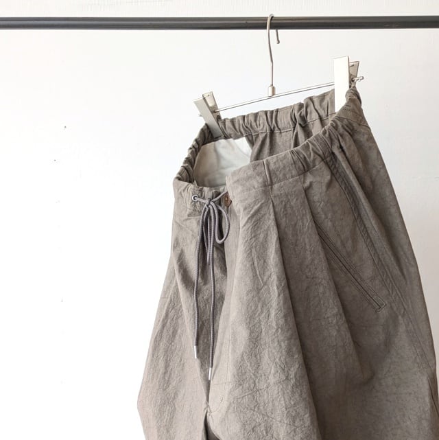天日干し仕上げでシワ感を加えナチュラルな色み・風合いに仕上げたことで夏でも気軽に穿きやすい一本に。(サンダル合わせもOK!)