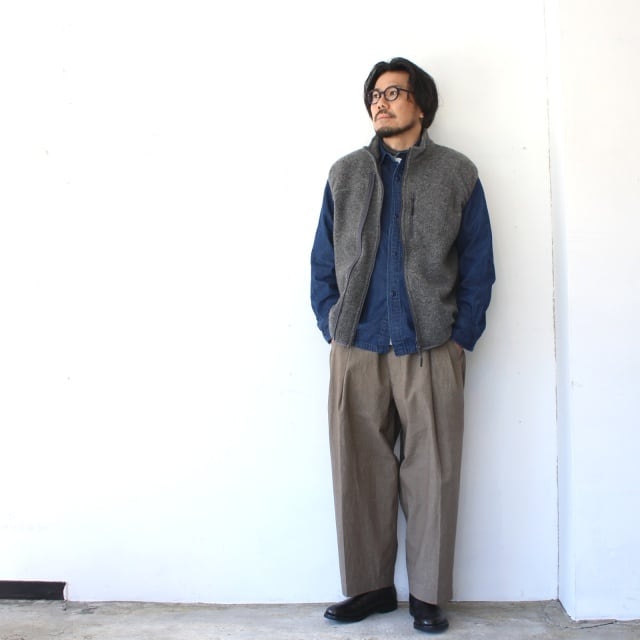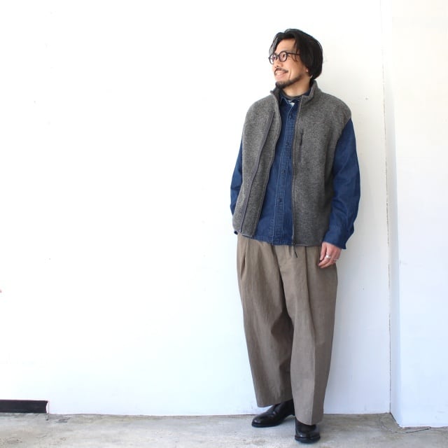 裾にかけてわずかにテーパードさせつつも全体的なワイドシルエットを持ち味にしています。