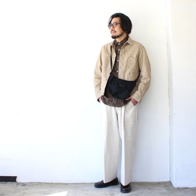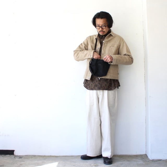 光の当たり方によって表情が変化する独特の生地感が、シンプルなデザインにさりげない奥行きを与えています。