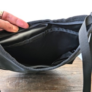 内側には仕切りポケットを備え、小物類を整理して収納することが可能。