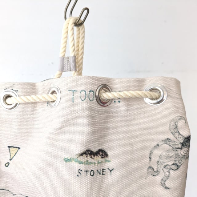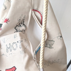 入れ口はロープで絞るだけのシンプルなバッグ。