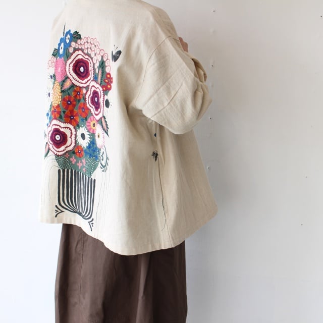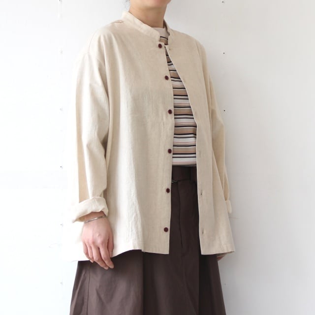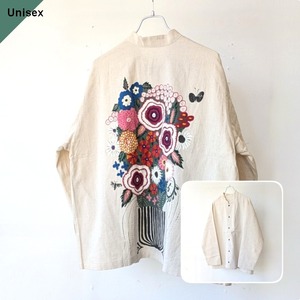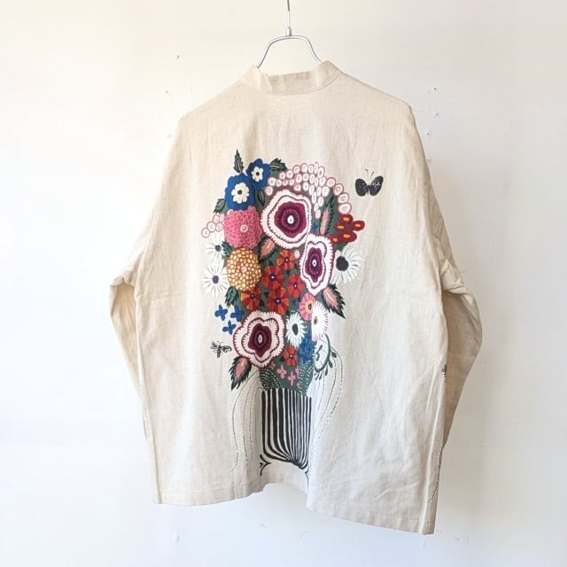 Bohemians 綿麻ブーケプリントスタンドカラーシャツ / C/L Bouquet Pop China-collar shirt