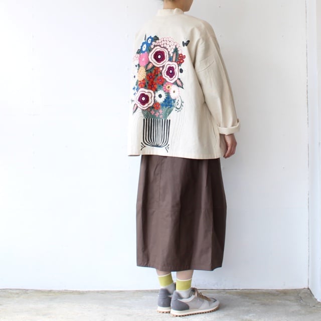 裾にダーツを使わず、生地の切り替えパターンでコクーンシルエットに仕上げたHAVERSACKらしい作り込み。