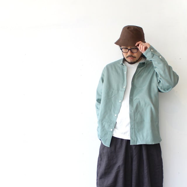 パリッとしたハリ感がありながら、ピーチスキン加工(微起毛)による表面の滑らかな質感が特徴で通年被りやすい生地。