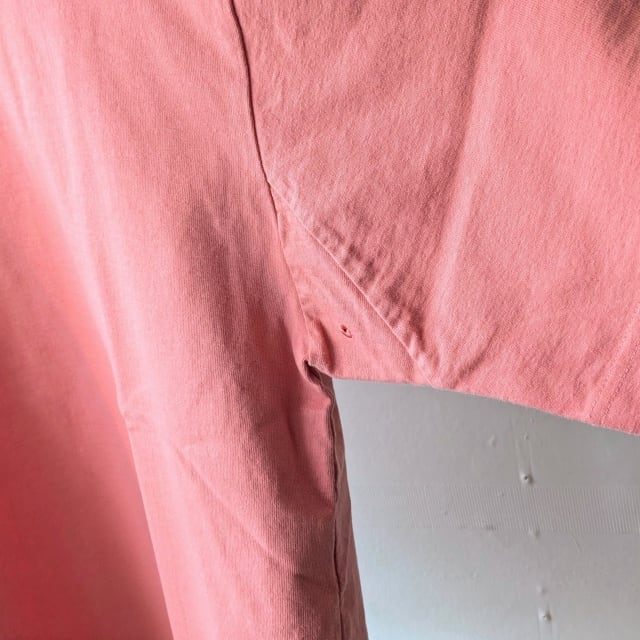 丸編み裏毛機を使用し、ギリギリまで度詰めで編み上げた国産天竺生地のヘビーウェイトTシャツ。