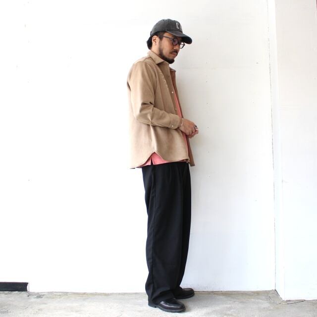 さりげないムラ感のある色みはこの生地ならではで、いい意味での素朴な風合いも感じられます。高いクオリティと、気負い過ぎない馴染み感がうまくミックスされています。
