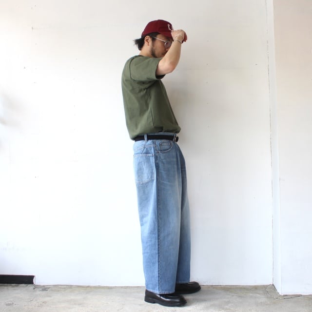 丸編み裏毛機を使用し、ギリギリまで度詰めで編み上げた国産天竺生地のヘビーウェイトTシャツ。