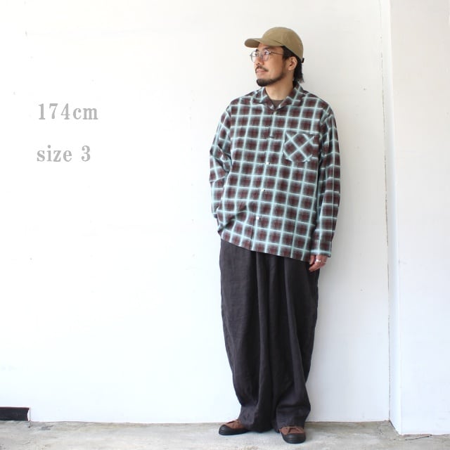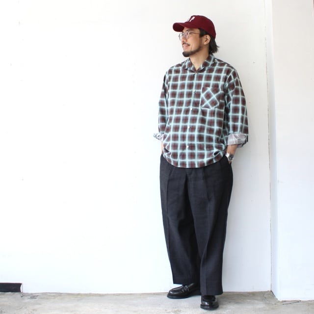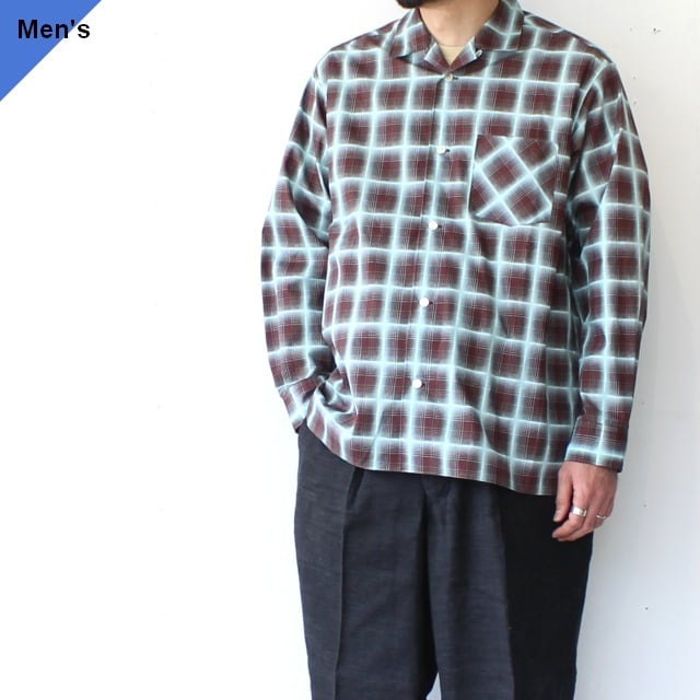 weac. プリントオンブレチェックオープンカラーシャツ RAINY BLUE (Blue Ombre-Check)
