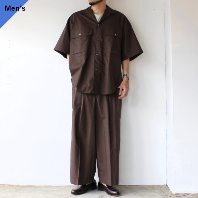 HAVERSACK 綿麻タイプライターオーバーシャツ&ワイドパンツ セットアップ Brown