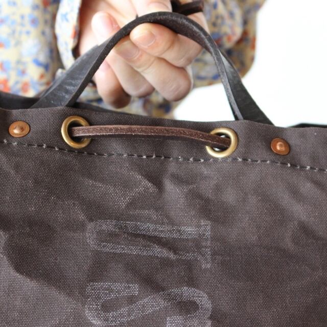 vascoの"OLD CANVAS" シリーズより、キャンバス×レザーの巾着バッグ。