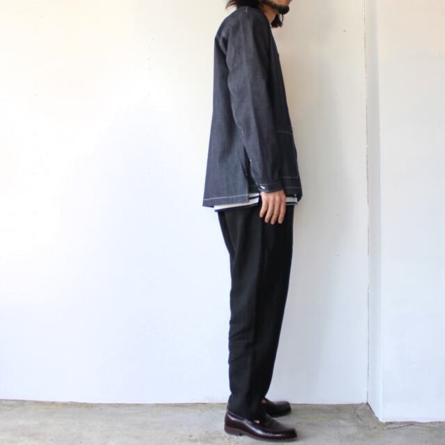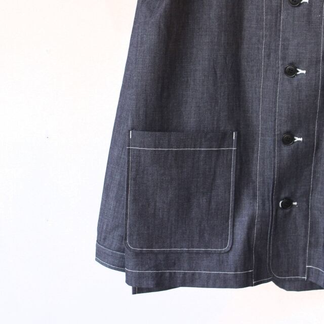 weac. ノーカラーデニムシャツカーディガン VICTOR (Indigo blue)