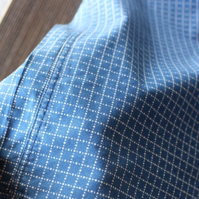 インディゴで染めた生地に、抜染によるドットで柄を施したウォバッシュシャツ。