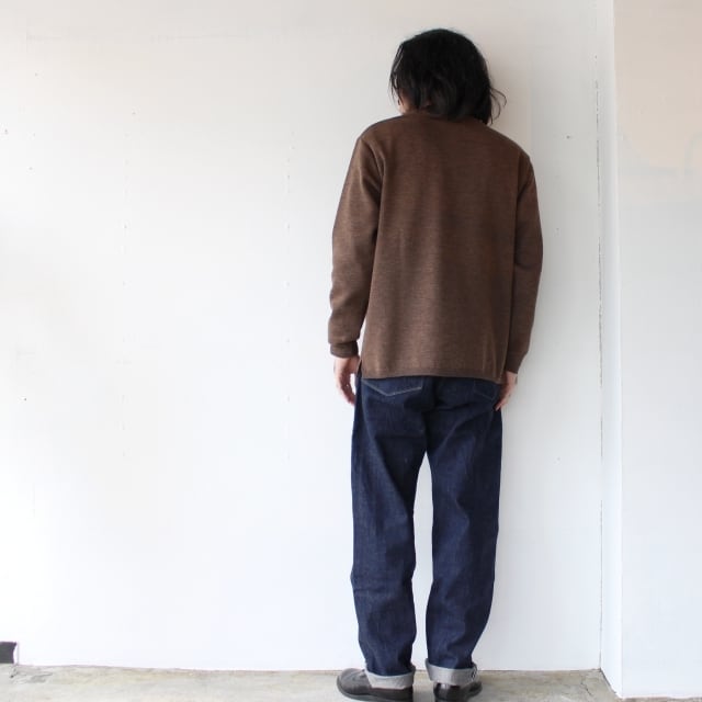生地は、インド藍で染めた経糸、茶綿を使用した緯糸で織り上げた13オンスホワイトセルビッジデニム。